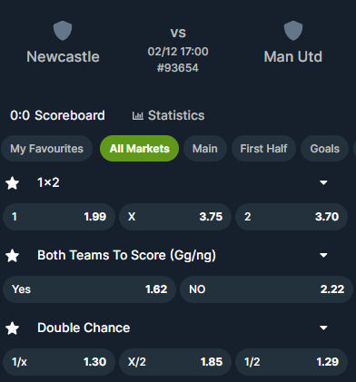 Match Result, also known as 1X2, is the most straightforward bet type. Here, you predict whether the home team will win (1), the away team will win (2), or if the game will end in a draw (X). While relatively simple, this type of bet can be tricky, especially when dealing with closely matched teams.