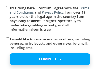 Before you can complete the registration process, you’ll need to review and agree to the terms and conditions of SportPesa. You also need to confirm that you are over 18 years of age and not a resident of a restricted country.